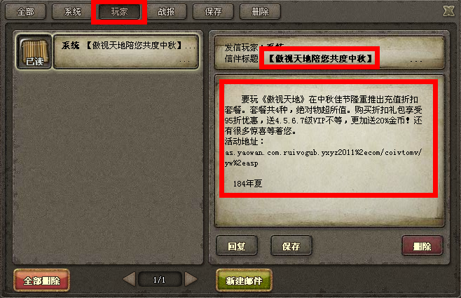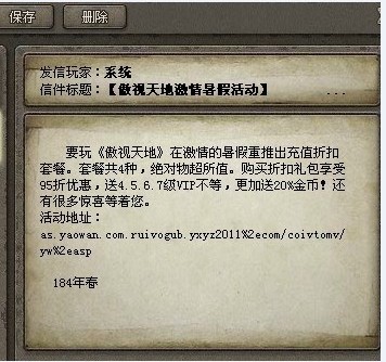 注:正确的系统邮件中不会包含网站地址,而是引导玩家本人进入要玩傲视天地唯一官网进行查看,请玩家注意分辨!