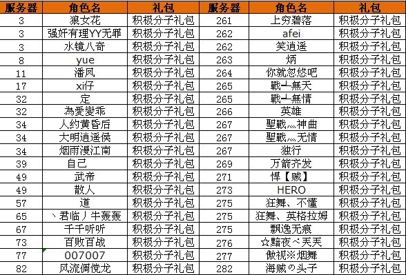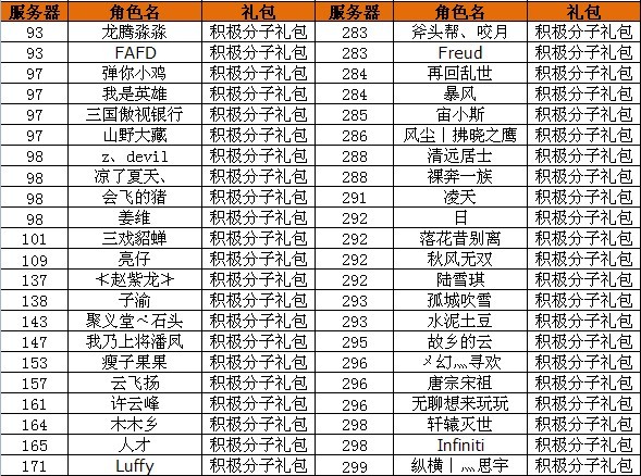 获得积极分子礼包的玩家有: